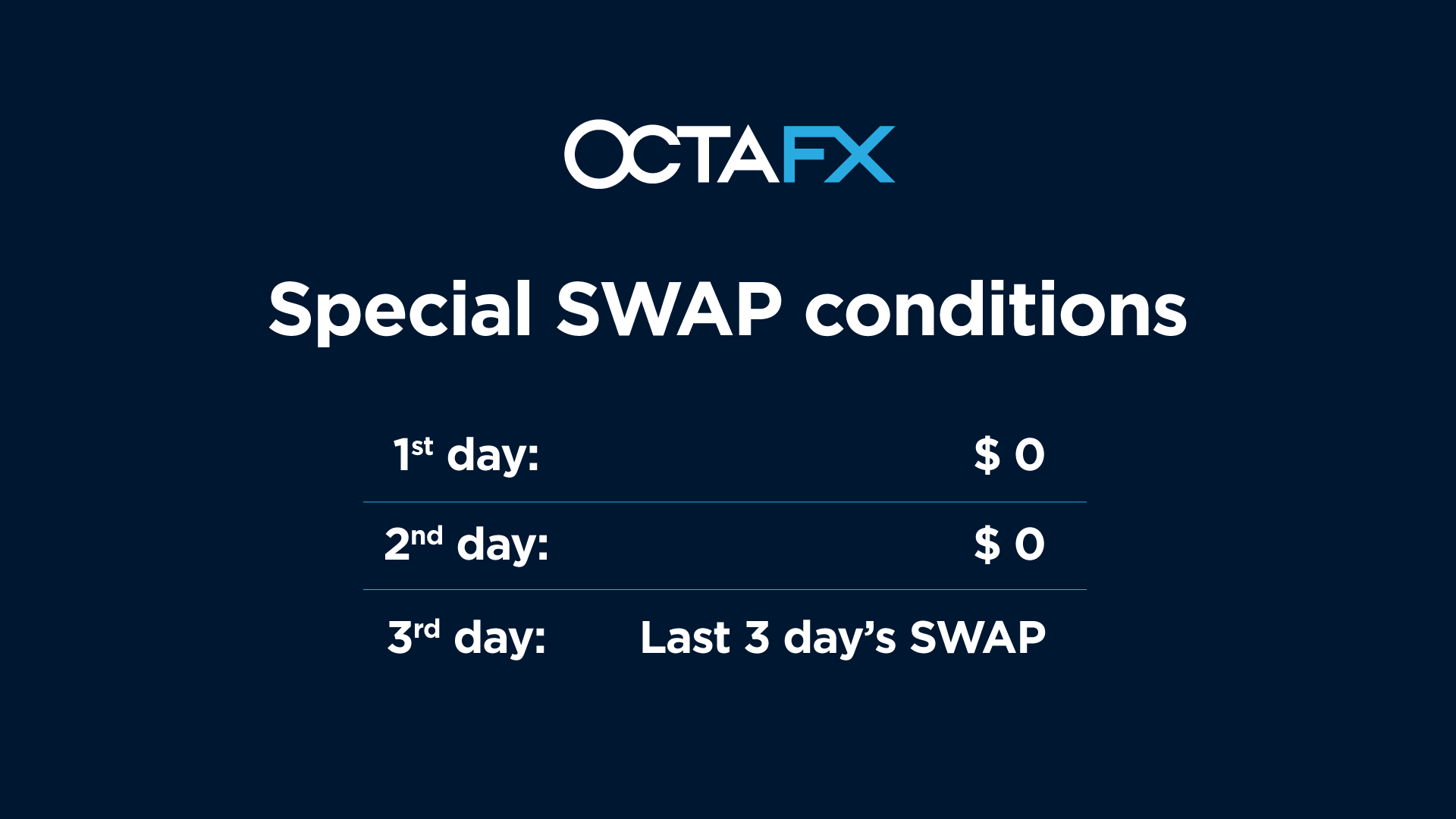 OctaFX charges swap once per three days, which means you can avoid paying a swap for a deal you hold overnight.