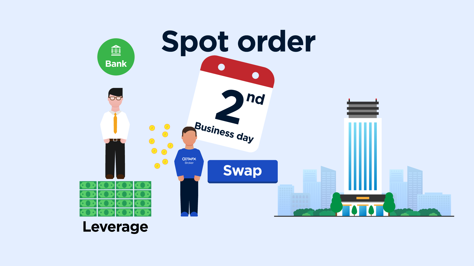 Swap appears because of a standard Forex order, named SPOT. You can see how it works on your screen.