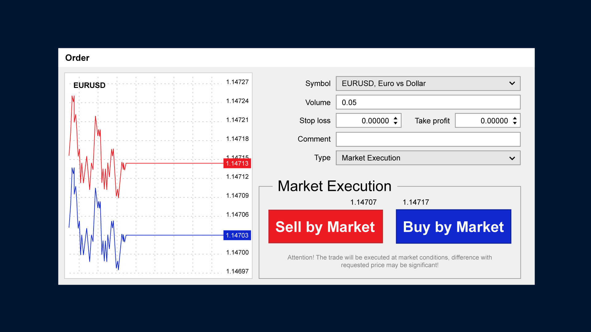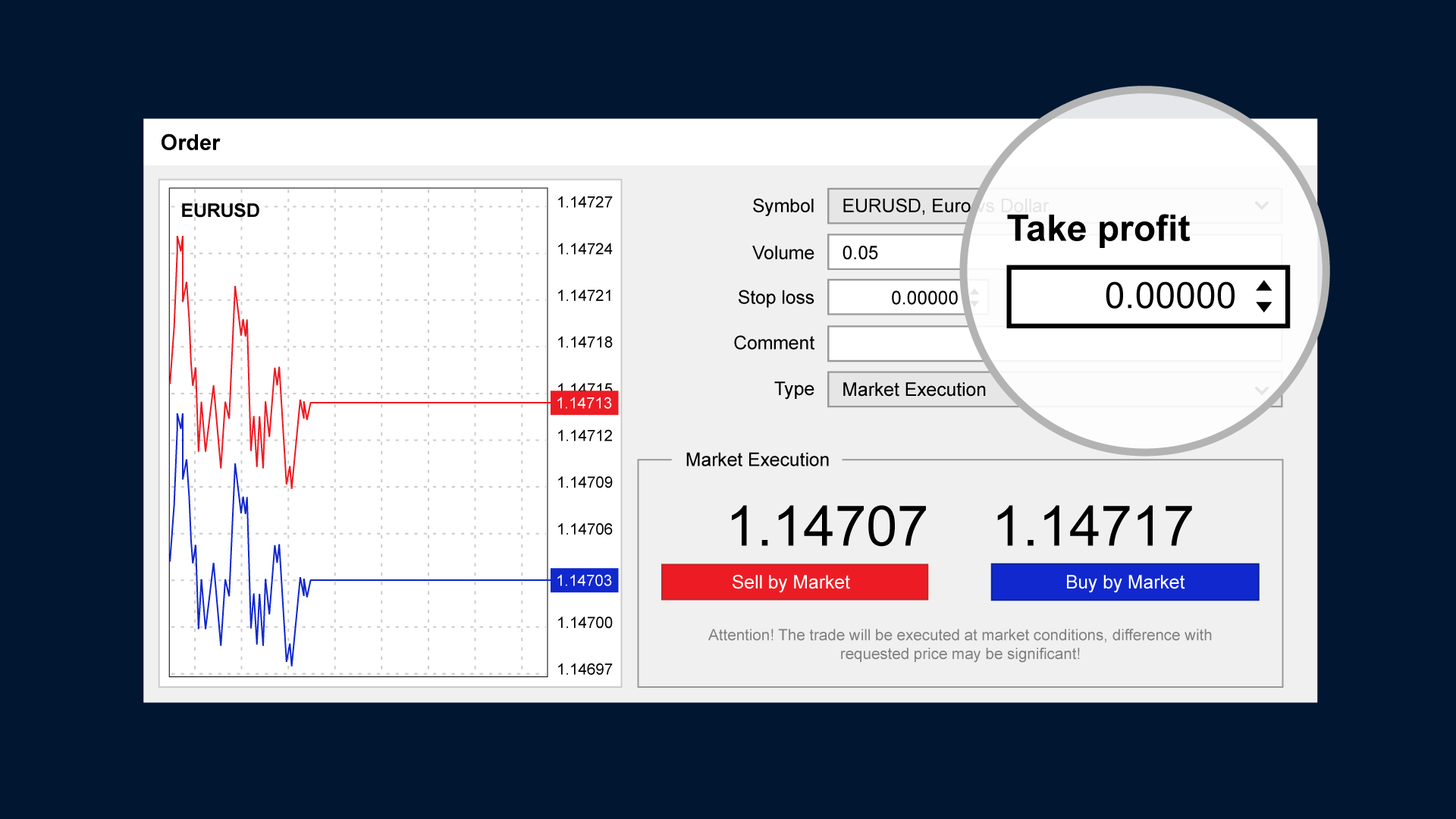 Every time you open an order via the MetaTrader platform, you can specify upper and lower price levels at which this order will be automatically closed. These thresholds are called ‘Take Profit’ and ‘Stop Loss’. We recommend you specify them both for every order.
